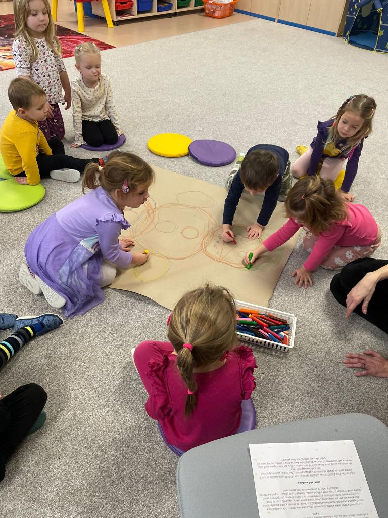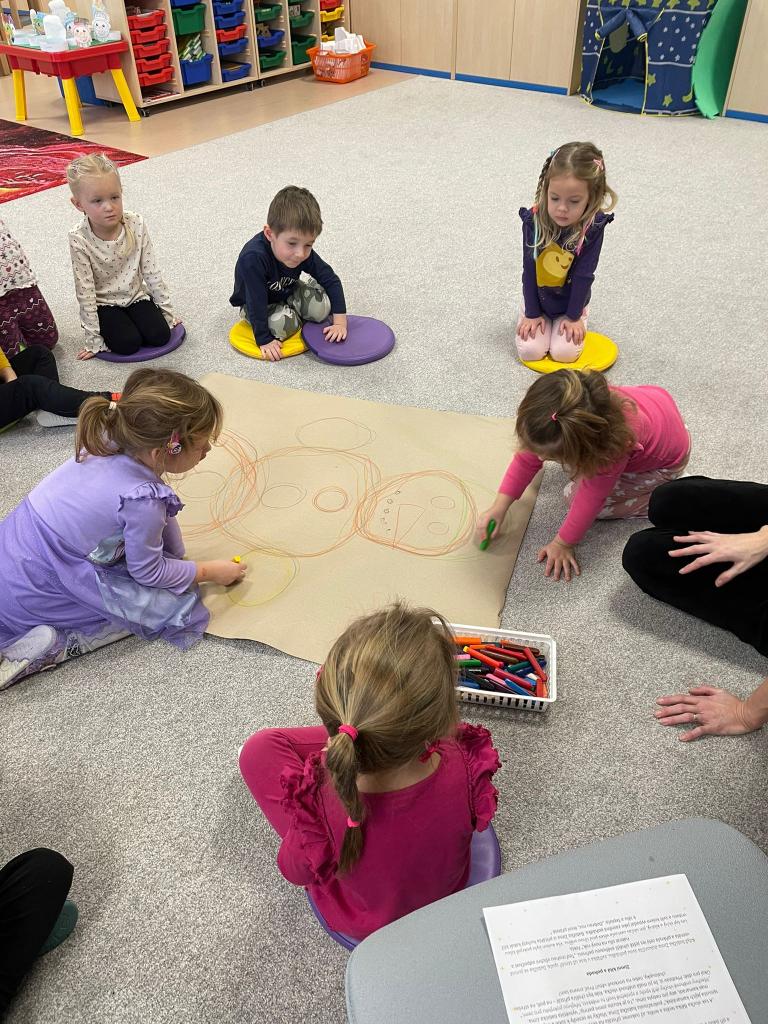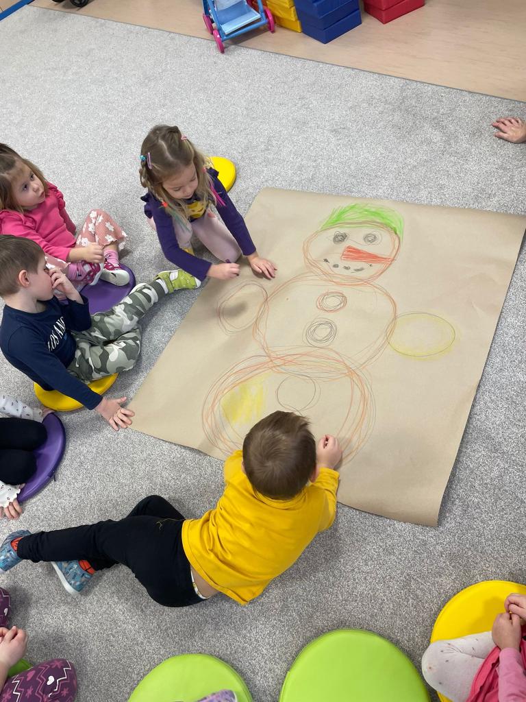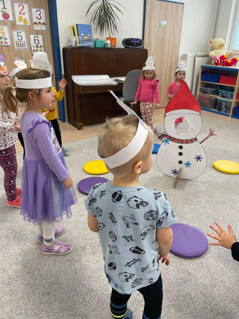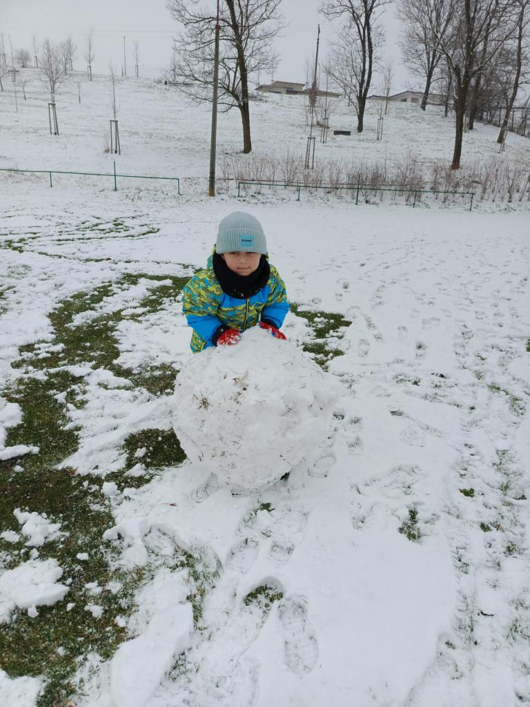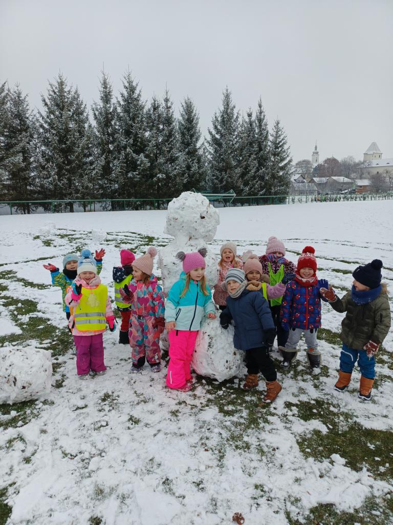 Konečně jsme se dočkali bílé sněhové peřiny. Nejprve jsme si společně ve třídě nakreslili sněhuláka a poté si ho postavili s písničkou a tancem.